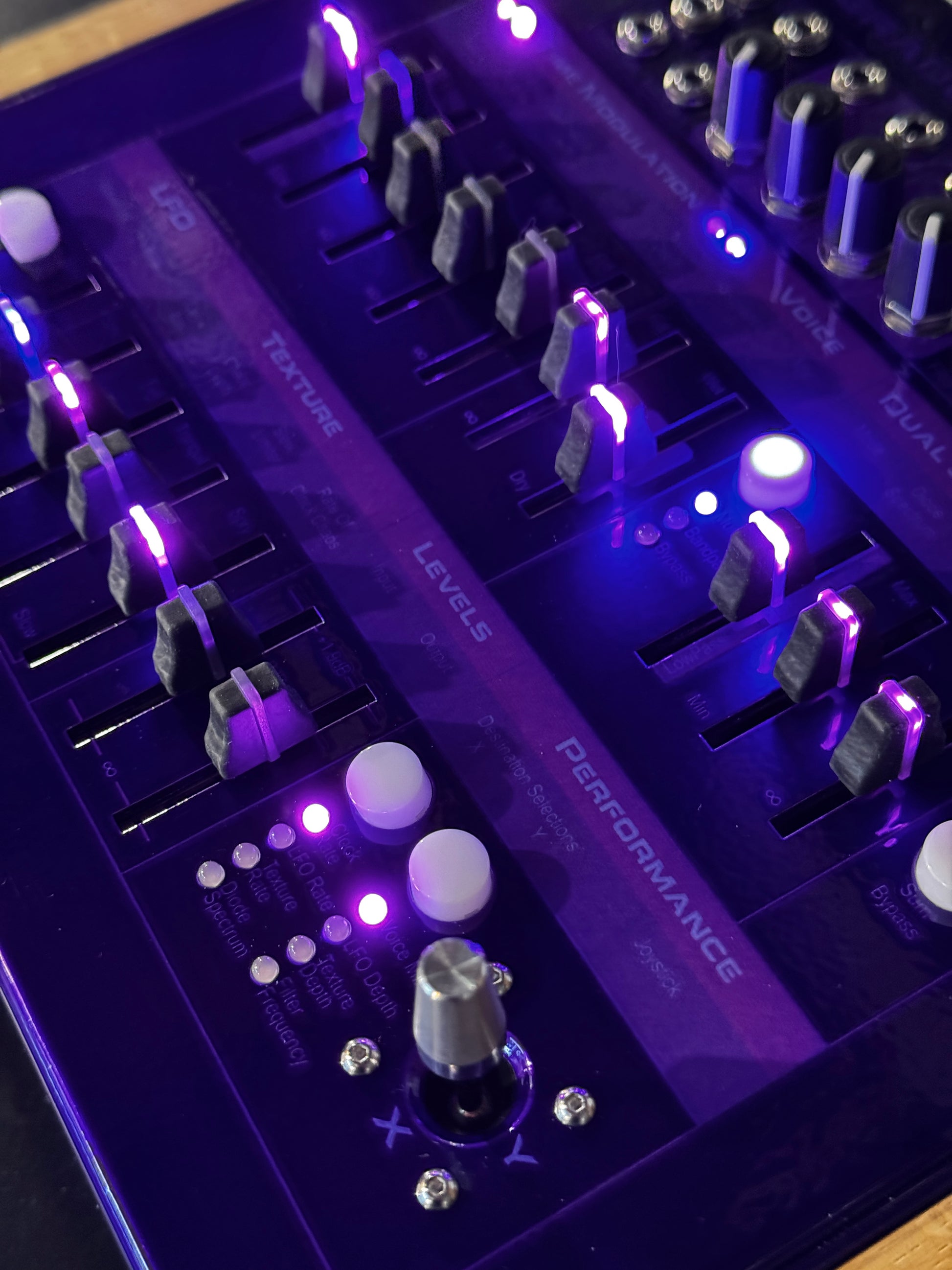 Chorus-1𝜶 in Illusion Purple powder coat and graphics theme. This is a dark purple with medium gloss. The primary LED colors are pink and purple, while the accent LED color is red. Ready to ship, will ship in a non-branded cardboard shipping box. This one's a bit cheaper because some of the text on the front panel may be difficult for some operators to read.