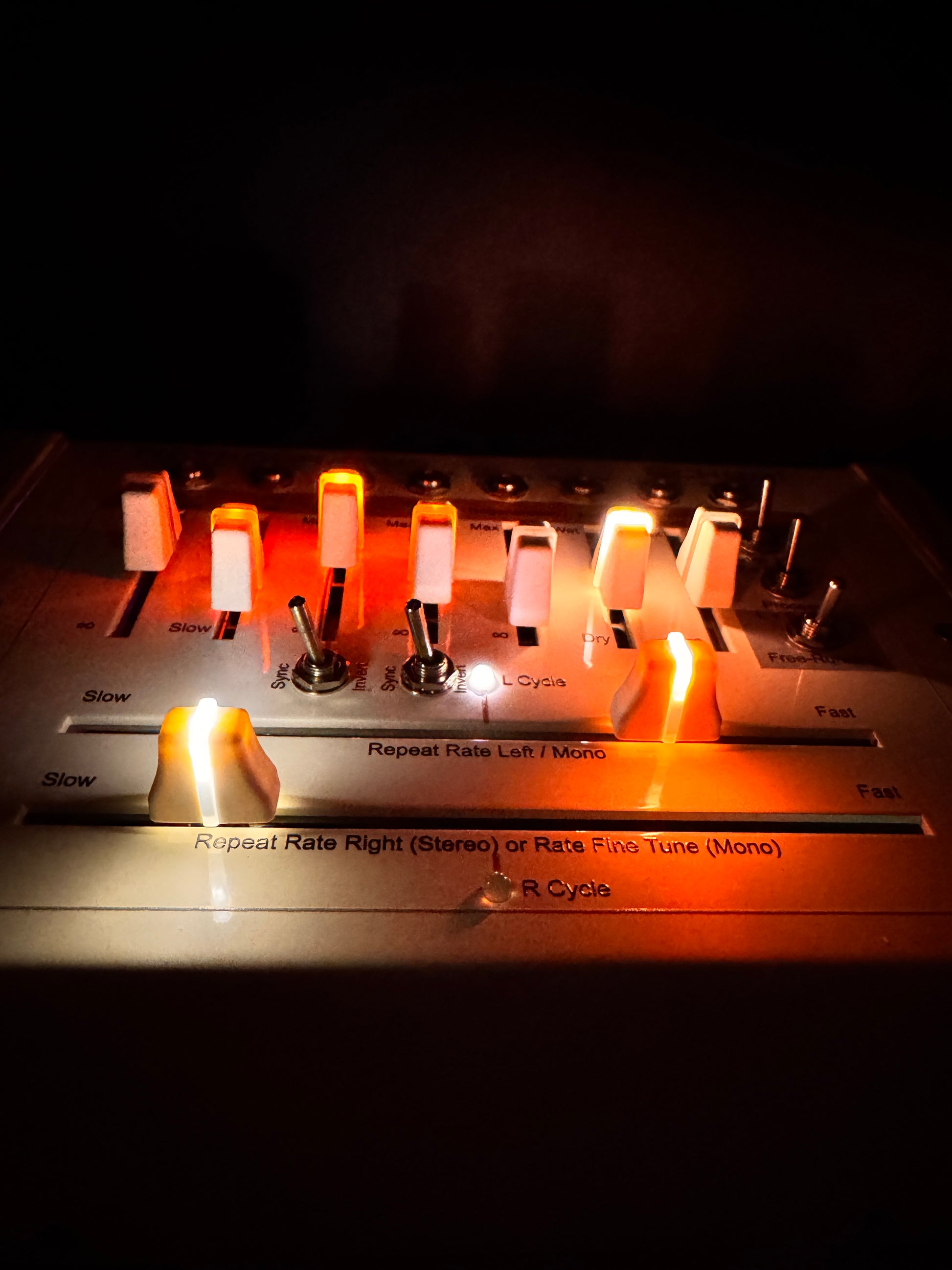 The left and right channels echo repeat speeds (clock rates) can be synchronized, or run independently, all while preserving true stereo audio.
